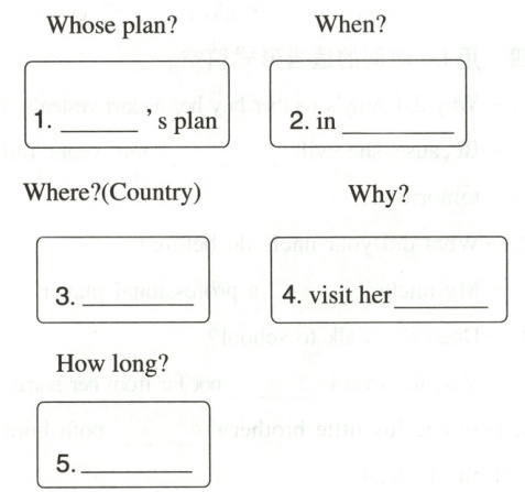 1. Amy 2. May 3. the UK 4. aunt 5. 3 days
