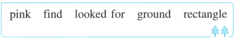 1. rectangle 2. pink 3. looked for 4. ground 5. find