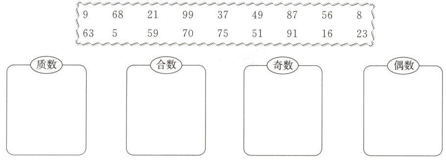 合数:9、68、21、99、49、87、56、8、63、70、75、51、91、16