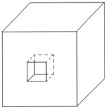 5. 如图,一个棱长为8 cm的正方体,从正面的中心向后挖去一个棱长为2 cm的正方体,剩余部分的表面积和体积分别是多少?