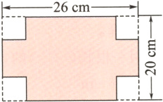 4. 一张长方形铁皮(如图),从四个角各切掉一个边长为3 cm的正方形,然后做成一个无盖的铁盒。这个铁盒的表面积是多少?