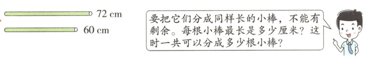 6. $(72,60)=12$,所以每根小棒最长是12 cm,$(72 + 60)\div12 = 11$(根)