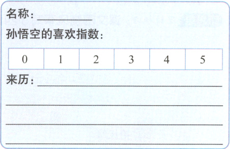 石猴(孙悟空)后来又有了其他名号,试着再写几个:弼马温、________、________、________。请你照样子,再给石猴做一张不同的名片。