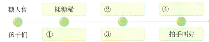3. 新思维 逻辑梳理 根据第③自然段的内容,将糖人鲁做糖人的过程和孩子们的表现填在相应的方框里。