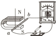 A. 闭合开关,导体ab在磁场中上下运动会产生感应电流