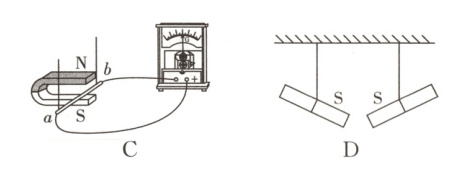 D 【点拨】导体上下运动,没有切割磁感线,所以不能产生感应电流,故A错误;导体做切割磁感线运动,电路中产生电流,是机械能转化为电能,故B错误;改变导体切割磁感线的方向,感应电流的方向是会发生变化的,灵敏电流计的指针偏转方向也会发生变化,故C错误;如果将灵敏电流计换成电源,当导体中有电流通过时,导体会受到磁场对它的作用力,故D正确。故选D。