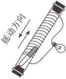 4. 新考法 小制作 小亮自制了如图所示的装置,在有机玻璃管上绕着带有绝缘层的导线,线圈两端连接着小功率灯泡,管内放入条形磁体,用橡皮塞堵住管口两端,当沿图中箭头方向来回摇动时,小灯泡就会发光。该装置发电的原理是______________,线圈中电流的方向是________(填“变化”或“不变”)的,在此过程中将________能转化成________能。