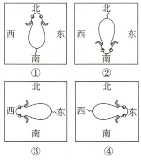 A 【点拨】地磁北极在地理南极附近,地磁南极在地理北极附近;地磁场的磁感线从地磁北极(地理南极附近)出来,回到地磁南极(地理北极附近),牛的身体朝向习惯性与地磁场磁感线平行,所以牛的身体朝向是南北方向,故①和②符合题意。故选 A。