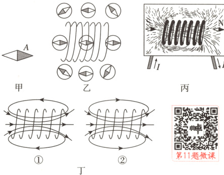 (3)根据磁极间相互作用规律可知,通电螺线管的右端为 N 极,左端为 S 极,磁体周围的磁感线是从 N 极出来,回到 S 极的,所以若用磁感线描述本次实验中通电螺线管的磁场,应是图丁中的①。