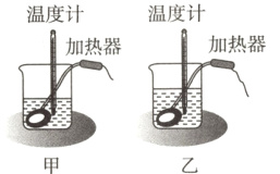 9. 在“比较不同物质的吸热能力”实验中,某小组的同学利用如图所示装置进行实验。所用器材有:两个相同的烧杯、两个规格相同的电加热器、初温不同但质量相同的两种液体。实验过程中,每隔1 min读取一次温度计的示数,并记录在表格中,如表所示。已知c_{甲}=4.2×10³ J/(kg·℃),下列说法正确的是( )