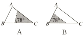 8. 如图,在△ABC中,∠A = 78°,AB = 4,AC = 6,将△ABC沿图示中的虚线剪开,剪下的阴影三角形与原三角形不相似的是( )