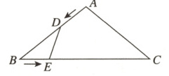 12. 新视角 动点探究题 如图,在等腰三角形ABC中,AB = AC = 10 cm,BC = 16 cm. 点D由点A出发沿AB方向向点B匀速运动,同时点E由点B出发沿BC方向向点C匀速运动,它们的速度均为1 cm/s. 连接DE,设运动时间为t s(0<t<10). 解答下列问题: