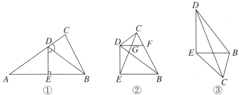 ∴∠DEA = 90° = ∠DEB. 在△DEA 和△DEB 中,$\begin{cases}∠ADE = ∠BDE\\DE = DE\\∠DEA = ∠DEB\end{cases}$,