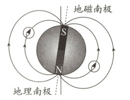 解析:地磁场的南北极与地理南北极相反,且不重合,地磁南极在地理北极附近,地磁北极在地理南极附近。