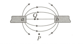 D 解析:在磁体外部,磁感线从磁体的N极出发,回到S极,所以a端为N极,b端为S极,故A错误;磁体的周围存在磁场,P点有磁场,故B错误;为了形象地描述磁场的性质,物理学中引入了磁感线,但磁感线不是真实存在的,故C错误;由题图可知,Q点的磁场方向水平向右,故D正确。