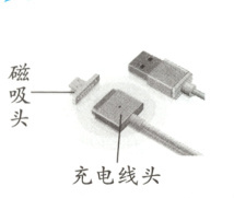 4(2024·山西模拟)如图所示,是一款由磁吸头和充电线头组成的新型充电线。使用时将磁吸头插入手机,当充电线头靠近磁吸头时,会自动吸附在一起对手机进行充电。下列有关分析正确的是 ( )