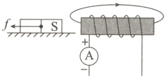 (2)异名磁极互相吸引,因此条形磁体受到通电螺线管向右的吸引力,所以条形磁体受到摩擦力的方向水平向左。如图所示。