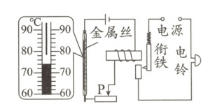 1(教材P132“动手动脑学物理”T2改编)如图所示是一种温度自动报警器的原理图。制作水银温度计时,在玻璃管的两端分别封入一段金属丝,当温度达到与电池正极相连的金属丝下端所指的温度时,电铃响起发出报警信号。下列说法正确的是 ( )
