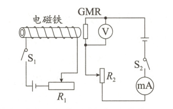 (3)可知电流表示数增大,而电压表示数减小,结合串联电路的分压原理可知GMR的阻值减小;而闭合开关S1,将滑动变阻器R1的滑片向左端滑动时,变阻器R1连入电路的电阻变小,左侧电路中的电流变大,电磁铁的磁性增强,由此可知该GMR的阻值随其周围磁场的增强而减小。