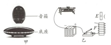 5. (2024·黄石一模)甲图为一款磁悬浮音箱,音箱底部有一块强磁铁E,圆柱状底座内部有一个电磁铁F,闭合开关后,音箱会悬浮在空中,其工作原理图如乙图所示。请在原理图上: