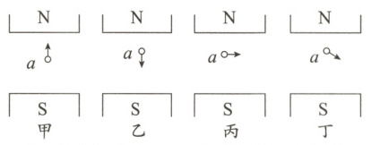 解析:由于发光二极管具有单向导电性,所以把两个发光二极管极性相反地并联起来,并与发电机串联,缓慢转动线圈,两个发光二极管交替发光,表明发电机产生的电流的方向是变化的,故是交流电;甲、乙中导体运动的方向与磁感线方向平行,没有做切割磁感线运动,不会产生感应电流;丙、丁中的导体做切割磁感线运动,会产生感应电流。