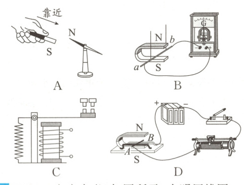 4(2022·滨州中考)进入初中学业水平考试考场时,监考教师会使用金属探测仪对大家进行检测。如果有同学携带金属制品,探测仪就会产生电流并报警。下列四个实验能反映金属探测仪工作原理的是( )