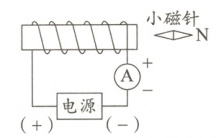 2.(2023·凉山州中考)如图所示,电流表正确连接在电路中,通电时请在括号中标出电源的正、负极及小磁针静止时的N极。