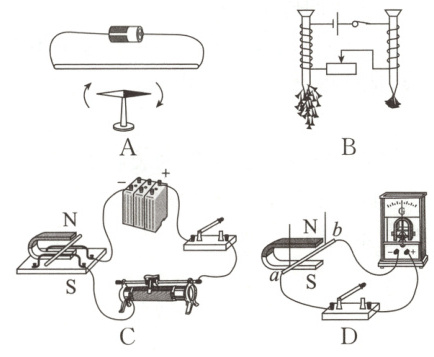 3.(2024·鸡西中考)中国完全自主建造的首艘电磁弹射型航空母舰——福建舰。当弹射装置内的导体通过强大的电流时,战斗机就受到强大的电磁力而弹射飞出,下列实验与电磁弹射装置工作原理相同的是( )