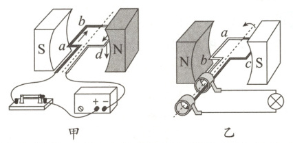 解析:法拉第的主要贡献是电磁感应现象;发电机的工作原理是电磁感应,即闭合电路的一部分导体在磁场中做切割磁感线运动时,导体中就会产生感应电流,甲图中有电源,乙图是发电机基本构造示意图。