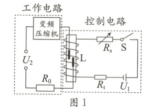 (1)压缩机在工作过程中主要把电能转化成机械能;当S接通时,由安培定则可判断出题图中线圈L的两个磁性弹片的前端为异名磁极。