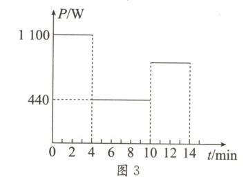 (4)由于变频作用,某段时间内工作电路的总功率变化如图3所示,已知保护电阻R0=2Ω,则10min内R0消耗的电能是多少?