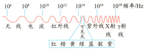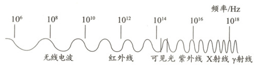 2.如图所示是电磁波家族,真空中各种电磁波的传播速度相同。某类恒星温度较低,呈暗红色;另一类恒星温度极高,呈蓝色。根据所给信息可推测 ( )