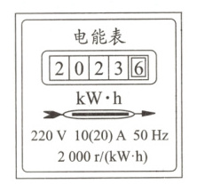 解析:由题意可得,他家五月份消耗的电能:W = $\frac{50 元}{0.5 元/(kW·h)}$ = 100 kW·h。由题图知五月末电能表的示数为2 023.6 kW·h,则月初电能表的示数为:2 023.6 kW·h - 100 kW·h = 1 923.6 kW·h;他家同时使用的用电器总功率不能超过:Pmax = UImax = 220 V×20 A = 4 400 W;由“2 000 r/(kW·h)”可知,电路中用电器每消耗1 kW·h电能,电能表转盘转2 000 r,转盘转160 r,电炖锅消耗的电能:W = $\frac{160}{2 000}$ kW·h = 0.08 kW·h,工作时间t = 3 min = 0.05 h,电炖锅正常工作的电功率,即额定功率:P = $\frac{W}{t}$ = $\frac{0.08 kW·h}{0.05 h}$ = 1.6 kW = 1 600 W。