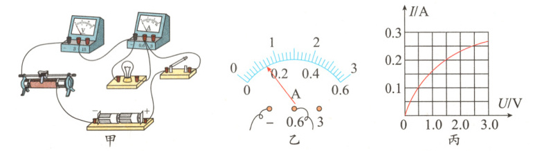 (7)由题图丙可知,当小灯泡两端电压增大,通过灯泡的电流也增大,但增大速度明显变缓说明电阻变大了,根据P = UI可知,原因可能是小灯泡功率变大,温度升高,灯丝电阻随温度的升高而增大,故小灯泡的电阻随两端电压的增大而增大。