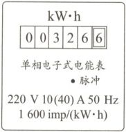 解析:由题图可知,电能表此时的读数为326.6 kW·h。由电能表的参数可知,电能表工作电压是220 V,允许通过的最大电流为40 A,他家同时工作的用电器最大总功率$P = UI = 220V×40A = 8800W$。当指示灯闪烁了48次时消耗电能$W=\frac{48}{1600}kW·h=\frac{3}{100}kW·h$,该用电器1 min消耗的功率$P'=\frac{W}{t}=\frac{\frac{3}{100}kW·h}{\frac{1}{60}h}=1.8kW = 1800W$。