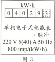 (2)一个周末,小明在爸爸的帮助下,断开家中其他用电器,家庭电路中只接通该空气炸锅,置于高温挡加热食物,正常工作2min,发现家中如图3所示的电能表指示灯闪烁了32次。求该空气炸锅的高温挡功率;