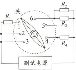 (1)由电路图可知,开关旋转到1时,R₁、R₄串联;开关旋转到2时,电路为R₄的简单电路;开关旋转到3时,R₂、R₃并联;因为串联电路中总电阻大于任何一个分电阻,并联电路中总电阻小于任何一个分电阻,所以,开关旋转到1时电路的电阻最大;开关旋转到2时电路的电阻较大;开关旋转到3时电路的电阻最小;