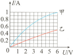 例2 (泗阳模拟)标有“6V”字样的甲、乙两个灯泡,它们的电流与电压变化的关系如图所示。下列判断正确的是 ( )