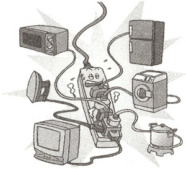 解析:家庭电路中总电流如果超过安全值,会由于电流的热效应,导致线路温度过高,容易引发火灾。观察题图可知,图中用电器总功率过大,由公式P=UI得,电路中的电流:I=$\frac{P}{U}$,电路的电压不变,当总功率P过大时,电流I会过大。