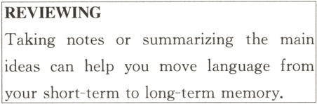 Taking notes or summarizing the main ideas can help you move language from your short - term to long - term memory.