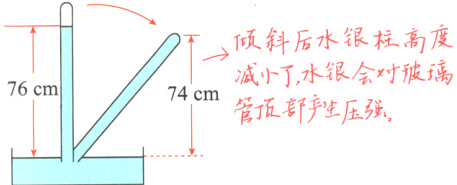 A. 玻璃管倾斜后,水银对玻璃管上端有压强