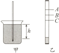 (2)如图乙所示为设计好的密度计的一部分,其刻度线上至A下至C,量程是1 g/cm³~1.6 g/cm³。若把这个密度计放入某种液体中,液面位置恰好在AC的中点B,则这种液体的密度______(选填“大于”“小于”或“等于”)1.3 g/cm³。