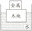 (2)金属块放入水中后,金属块会沉到底部,所以金属块排开水的体积为$100\ cm^{3}$,而木块漂浮在水面上,以木块为研究对象,木块的重力等于木块此时受到的浮力,所以$G_{木}=F_{浮}'=\rho_{水}gV_{排}'=5\ N$,所以$V_{排}'=\frac{F_{浮}'}{\rho_{水}g}=\frac{5\ N}{1×10^{3}\ kg/m^{3}×10\ N/kg}=5×10^{-4}\ m^{3}$,$V_{金}+V_{排}'=1×10^{-4}\ m^{3}+5×10^{-4}\ m^{3}=6×10^{-4}\ m^{3}<9×10^{-4}\ m^{3}$,所以金属块放入水中后,容器中水位是下降的。