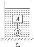 (3)题图乙中A、B共同悬浮,此时$F_{浮}=G_{A}+G_{B}=4.8\ N + 4.2\ N = 9\ N$,根据$F_{浮}=\rho_{液}gV_{排}$得此时物体A、B排开液体的总体积为:$V_{排总}=\frac{F_{浮}}{\rho_{水}g}=\frac{9\ N}{1.0×10^{3}\ kg/m^{3}×10\ N/kg}=9×10^{-4}\ m^{3}$,其中$V_{A}=600\ cm^{3}=6×10^{-4}\ m^{3}$,由$V_{排总}=V_{A}+V_{B}$得物体B的体积为:$V_{B}=V_{排总}-V_{A}=9×10^{-4}\ m^{3}-6×10^{-4}\ m^{3}=3×10^{-4}\ m^{3}$,由$G_{B}=m_{B}g$得物体B的质量为:$m_{B}=\frac{G_{B}}{g}=\frac{4.2\ N}{10\ N/kg}=0.42\ kg$,物体B的密度为:$\rho_{B}=\frac{m_{B}}{V_{B}}=\frac{0.42\ kg}{3×10^{-4}\ m^{3}}=1.4×10^{3}\ kg/m^{3}$。