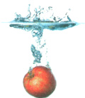 例2(湘西州中考)从高处掉入水里的苹果(如图所示),最终会漂浮在水面上。设苹果的质量$m = 150g$,苹果密度均匀,其密度$\rho_{苹}=0.6×10^{3}kg/m^{3}$,水的密度$\rho_{水}=1.0×10^{3}kg/m^{3}$,g取10 N/kg。求: