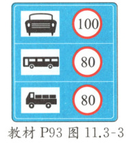 1. 如图11.3 - 3所示是机动车的限速标志牌,对机动车进行限速的原因是机动车的质量一定,速度________,动能________,刹车制动距离________,越容易发生交通事故;对不同的车型限制的车速不一样,是因为在相同的道路上,不同车型的机动车质量不同,速度相同时,质量越大的动能________,制动距离________,当制动距离相同时,不同车型限速就不同。