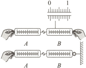 (4)如果每只手的拉力均相同,那么,在两次实验中弹簧测力计B的示数______(选填“相等”或“不相等”)。