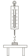 9(合肥期中)一重为5 N的钩码放在水平桌面上静止,现用弹簧测力计对它施加一个竖直向上的拉力F₁,弹簧测力计的示数如图所示。