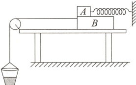 解析:当沙桶与沙子的总重力为G时,物块A处于静止状态,长木板B向左做匀速直线运动,则物块A受到重力、支持力、弹簧对A向右的拉力和B对A向左的摩擦力这四个力的作用。若向沙桶中再加入沙子,绳对B的拉力变大,沙桶未接触地面且物块A未从长木板B的右端滑下,因为压力和接触面的粗糙程度均不变,则桌面对长木板B 的滑动摩擦力不变。