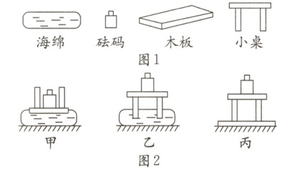 9.在“探究压力的作用效果与哪些因素有关”的实验中,小明和小华利用了图1中所提供的器材(小桌、海绵、砝码、木板),设计了如图2所示的甲、乙两个实验。通过观察如图甲、乙所示的实验后,得出了“压力一定时,受力面积越小,压力的作用效果越明显”的结论。此后,小华把小桌挪放到一块木板上如图丙所示,发现小桌对木板的压力效果不够明显。通过对如图甲、丙所示实验的比较,又得出了“压力一定时,受力面积越小,压力的作用效果越不明显”的结论。